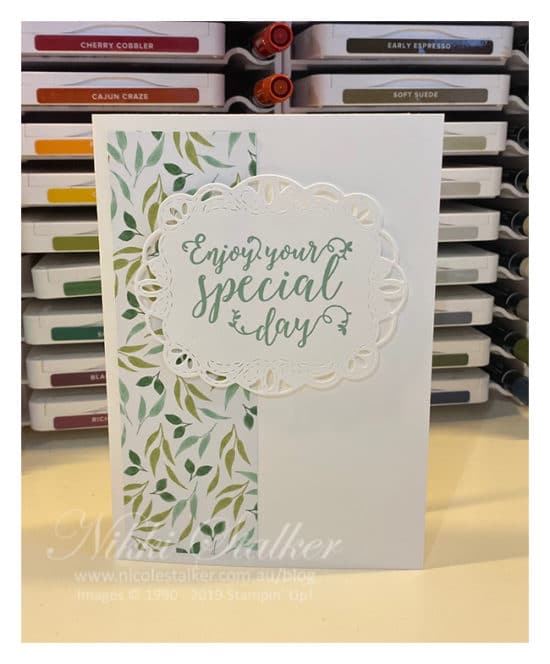 Today I’m sharing the second card for my recent card class and this one used the lovely sentiment ‘Enjoy Your Special Day’.